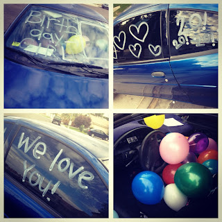 So- besides those things i have officially turned 20!! its insane. i feel like that is SO old. my birthday was awesome. my cute siblings decorated my car and i loved it! i got some hilarious texts, awesome phone calls, a bouquet of roses and yummy treats. i cannot believe that i am 20 and no longer a teenager. its super weird.